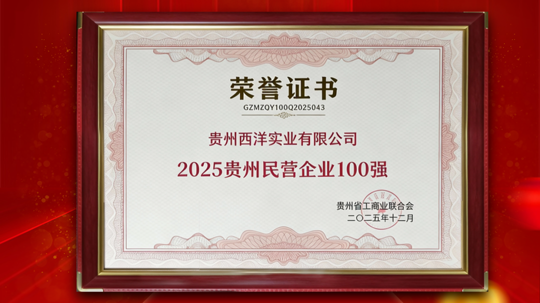 蝉联殊荣 | 西洋诺威施再登“贵州民营企业100强”榜单
