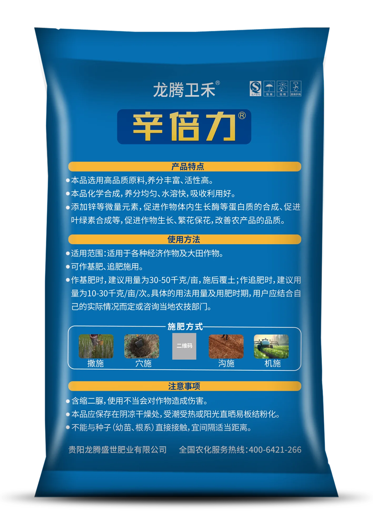 产品特点:本品选用高品质原料,养分丰富、活性高。本品化学合成,养分均匀、水溶快,吸收利用好。添加锌等微量元素,促进作物体内生长酶等蛋白质的合成、促进叶绿素合成等,促进作物生长、繁花保花,改善农产品的品质。
