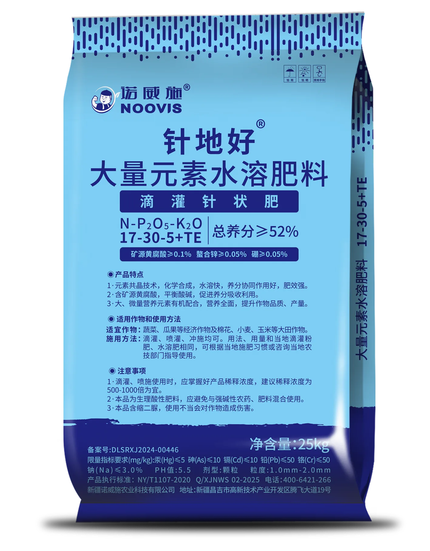 注意事项:1·滴灌、喷施使用时,应掌握好产品稀释浓度,建议稀释浓度为500-1000倍为宜。2·本品为生理酸性肥料,应避免与强碱性农药、肥料混合使用。3.本品含缩二脲,使用不当会对作物造成伤害。