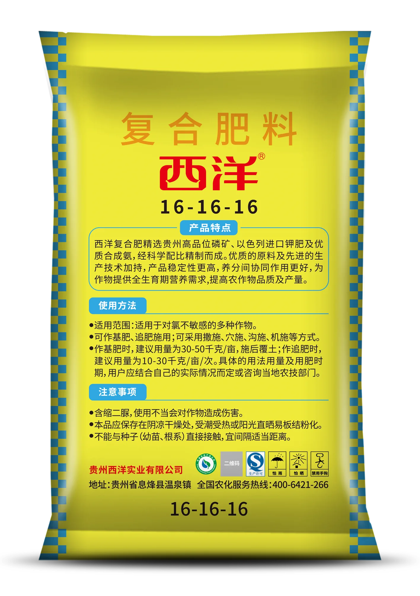 产品特点:西洋复合肥精选贵州高品位磷矿、以色列进口钾肥及优质合成氨,经科学配比精制而成。优质的原料及先进的生产技术加持,产品稳定性更高,养分间协同作用更好,为作物提供全生育期营养需求,提高农作物品质及产量。