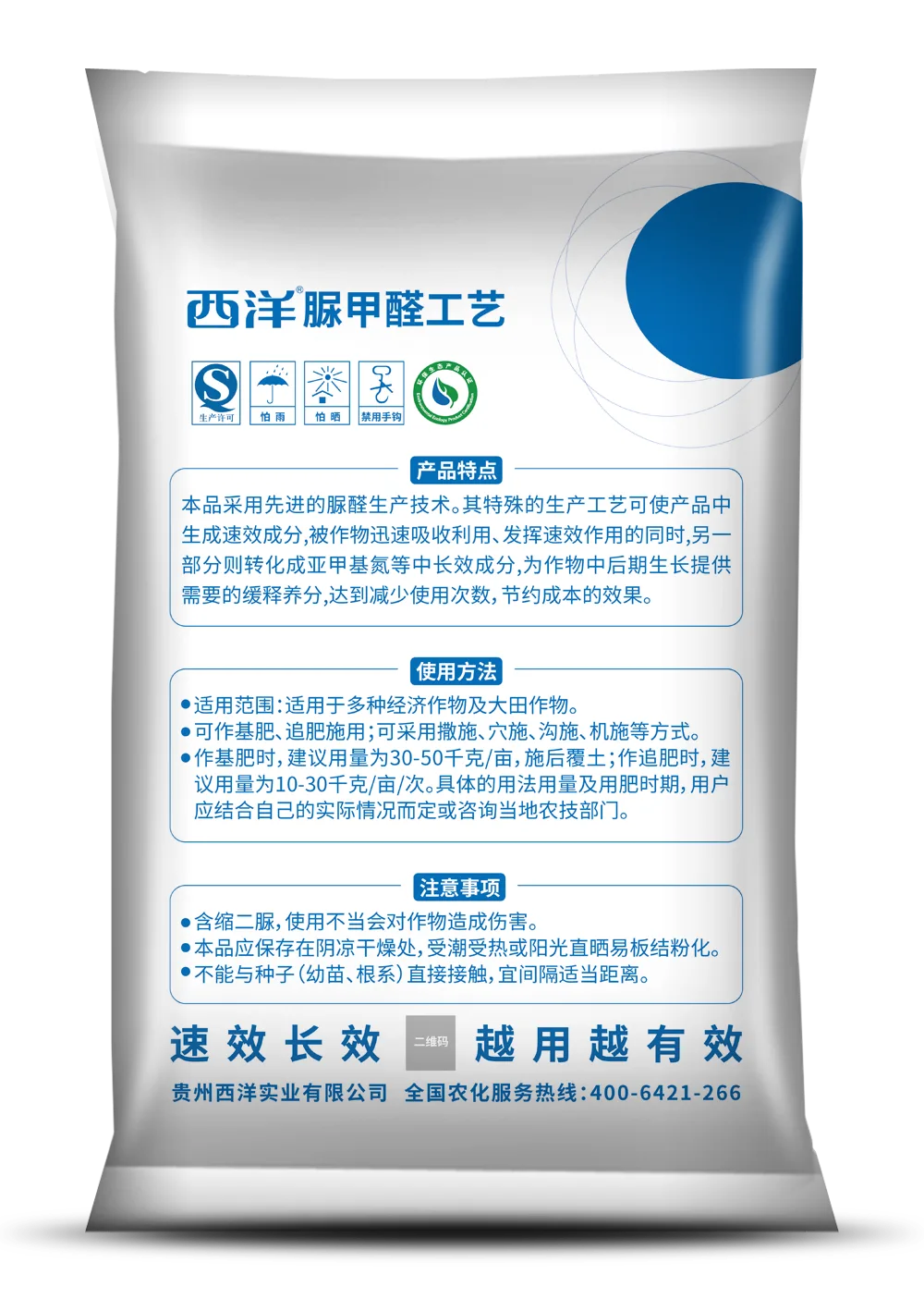 产品特点:本品采用先进的脲醛生产技术。其特殊的生产工艺可使产品中生成速效成分,被作物迅速吸收利用、发挥速效作用的同时,另一部分则转化成亚甲基氮等中长效成分,为作物中后期生长提供需要的缓释养分,达到减少使用次数,节约成本的效果。