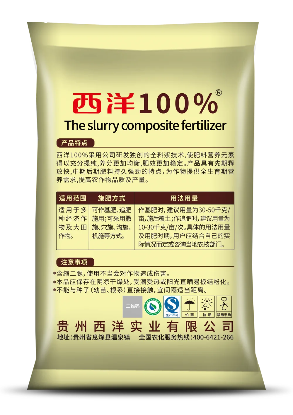 产品特点:西洋100%采用公司研发独创的全料浆技术,使肥料营养元素得以充分提纯,养分更加均衡,肥效更加稳定。产品具有先期释放快,中期后期肥料持久强劲的特点,为作物提供全生育期营养需求,提高农作物品质及产量。